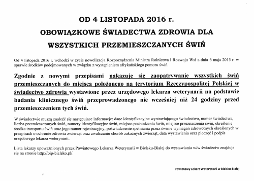 Państwowy Instytut Weterynaryjny-Państwowy Instytut Badawczy w Puławach udostępnia film edukacyjny pt. "Afrykański pomór świń - zasady ochrony świń przed chorobą"