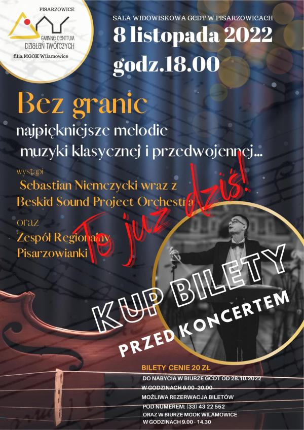 We wtorkowy wieczór 8 listopada w Gminnym Centrum Działań Twórczych w Pisarzowicach miało miejsce wspaniałe muzyczne wydarzenie. Koncert "Bez granic" wprowadził zebranych w wyjątkowy nastrój przeżywania zbliżających się obchodów Święta Odzyskania Niepodległości przez Polskę.