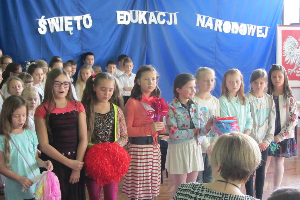 Tego dnia nie ma zajęć dydaktycznych w szkole, a świętują wszyscy – uczniowie, nauczyciele i pracownicy. Jak co roku zostali oni zaproszeni na salę gimnastyczną. Tu okolicznościowy program przedstawiła klasa IVB pod opieką pani Sandry Skowronek, a oprawę muzyczną przygotował chór pod kierunkiem pani Krystyny Bander. Tym razem jurorzy oceniali występy kolegów. W tej roli świetni byli Oliwier Janik i Olek Pytel, którzy znakomicie rozkręcali publiczność. A ich koledzy skarżyli się na szkolną rzeczywistość: