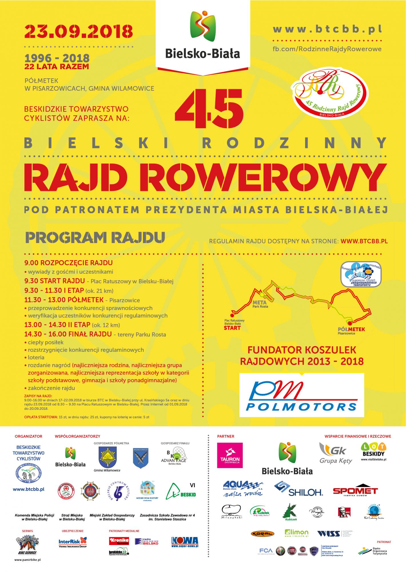 » 45 Bielski Rodzinny Rajd Rowerowy 23.09.2018 z półmetkiem w Pisarzowicach