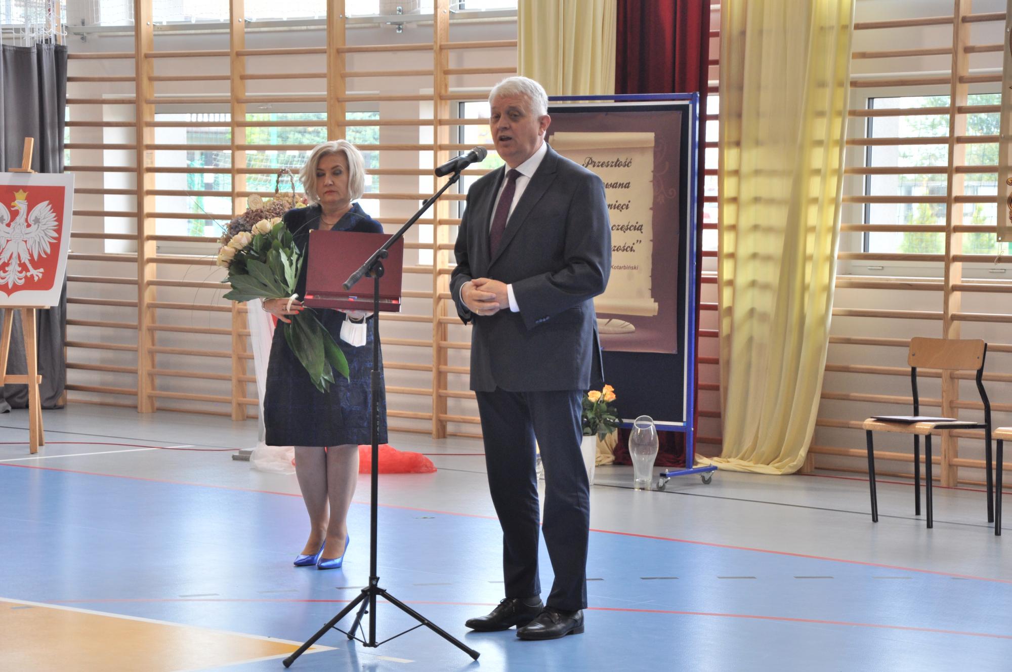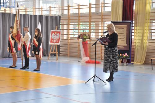 Po wprowadzeniu sztandaru szkoły i odśpiewaniu hymnu państwowego głos zabrała Dyrektor Szkoły Podstawowej im. S. Staszica w Dankowicach pani Dorota Foltan, witając jako gospodarz przybyłych gości. W swoim wystąpieniu przedstawiła historię budynku szkoły. Podkreśliła, jak ważnym wydarzeniem dla całej miejscowości było oddanie go do użytku. Minutą ciszy uczczona została pamięć tych, którzy wpisali się w historię szkoły, a których już nie ma wśród nas.