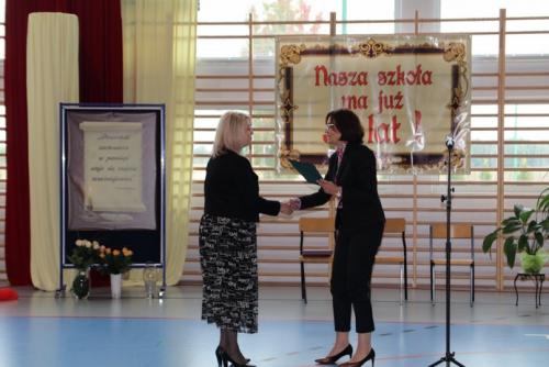 Uroczystość szkolna przebiegała w specjalnie na tę okazję udekorowanej sali gimnastycznej. Część korytarzy zamieniła się na ten dzień w sale wystawowe, w których można było zapoznać się z historią szkoły i osiągnięciami uczniów.