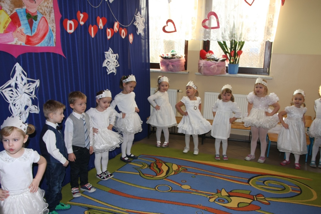 W uroczystościach uczestniczyły panie dyrektor: Mariola Dylewska-Mitoraj, Maria Jonkisz i Elżbieta Maciejczyk. Na tle świątecznej okazjonalnej dekoracji dzieci prezentowały swoje umiejętności.