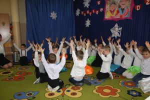 Grupa 3, 4 latków recytowała wiersze, śpiewała piosenki o babci i dziadku. Były także układy taneczne do piosenek „Czacza dla babci”, „Babciu droga babciu”. Dzieci zaprezentowały swe umiejętności gry na instrumentach perkusyjnych wykonując utwór „Time to say goodbye”.