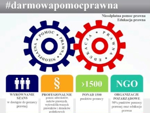 W naszym powiecie, zostanie utworzonych 6 punktów, w których nieodpłatnie będzie świadczona pomoc prawna przez adwokatów, radców prawnych a także przez organizacje pozarządowe (doradców podatkowych, absolwentów prawa legitymujących się odpowiednim doświadczeniem ).