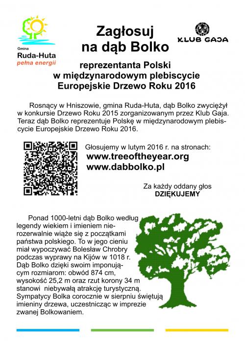 Zagłosuj na dąb Bolko reprezentanta Polski w międzynarodowym plebiscycie Europejskie Drzewo Roku 2016