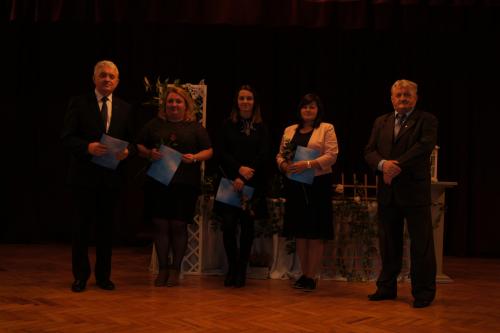 Następnie dyrektorzy: Genowefa Lisewska, Mariola Dylewska – Mitoraj i Maciej Żarski wręczyli akty nadania stopnia nauczyciela kontraktowego swoim nauczycielom, które otrzymali: Pani Justyna Pucka z Zespołu Szkolno – Przedszkolnego w Starej Wsi, Pani Małgorzata Chalcarz z Zespołu Szkół w Wilamowicach oraz Pani Aleksandra O’Rourke Zespołu Szkolno - Przedszkolnego w Hecznarowicach. Pan Burmistrz i Przewodniczący Rady Miejskiej złożyli gratulacje.