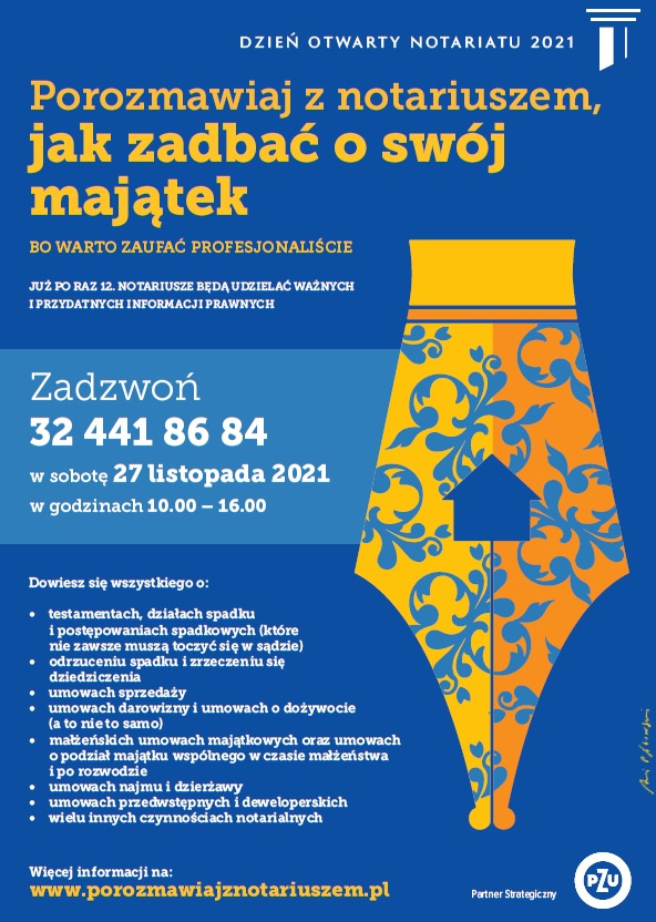 W sobotę 27 listopada w godz. 10-16 już po raz 12. notariusze będą udzielać bezpłatnych informacji prawnych telefonicznie oraz za pośrednictwem mediów społecznościowych – na czacie i podczas streamingu.