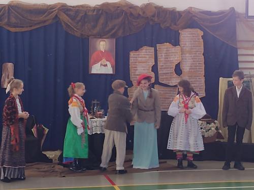 Uroczystość Dnia Patrona rozpoczęliśmy niezwykłą miniaturą teatralną przygotowaną przez siostrę Kazimierę Szumal. Uczniowie przypomnieli sobie najważniejsze informacje z życia abpa Józefa Bilczewskiego.