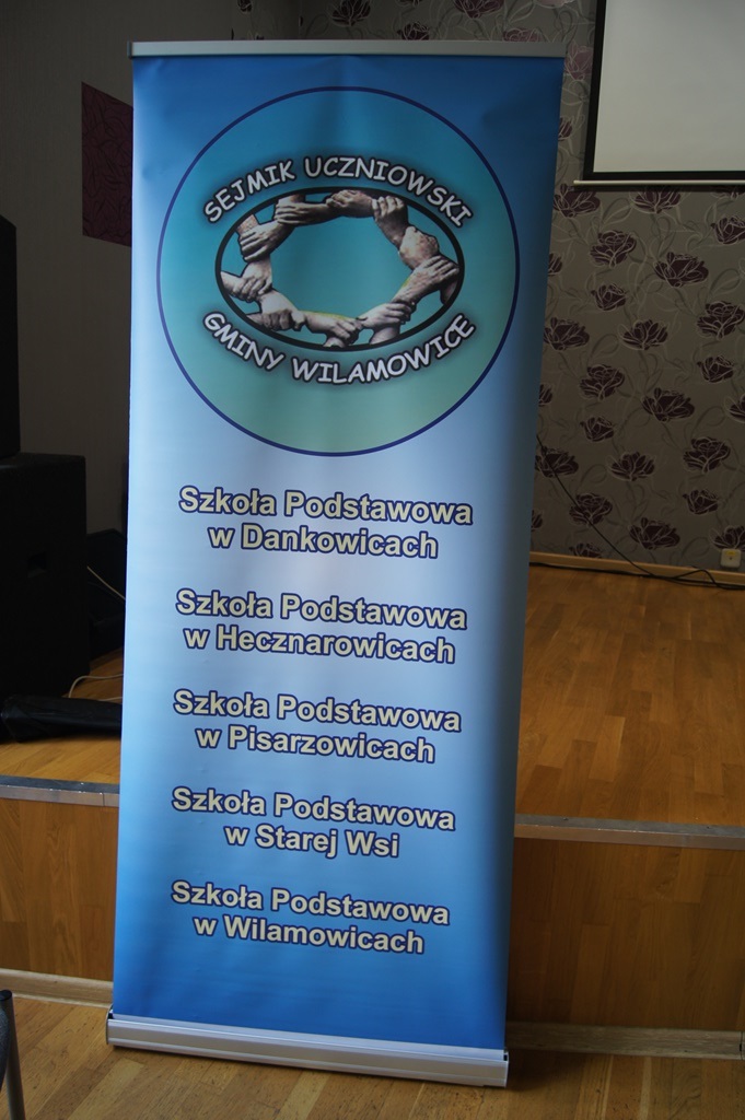 Kierownik Zakładu Obsługi Szkół i Przedszkoli Gminy Wilamowice, Pani Bożena Sobocińska, która była inicjatorką powstania Sejmiku Uczniowskiego, przywitała przybyłych gości, delegatów szkół oraz opiekunów. Następnie Pan Andrzej Kołtun Sekretarz Gminy Wilamowice, w niezwykle serdeczny sposób przywitał się z uczestnikami obrad, po czym pogratulował wyboru na delegatów Sejmiku Uczniowskiego Gminy Wilamowice. Życzył delegatom sejmiku owocnej pracy w czasie obrad, ponadto opowiedział o zbliżających się wyborach parlamentarnych. Zachęcił, aby delegaci zmobilizowali swoich rodziców, dziadków i sąsiadów do czynnego skorzystania z prawa wyborczego w dniu 13 października 2019 r. W kolejnej części sesji przedstawiono cel działalności Sejmiku Uczniowskiego Gminy Wilamowice, logo sejmiku, a także informacje organizacyjne.