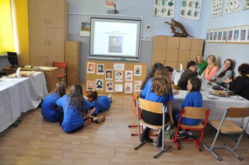 Przybyli delegaci mogli dowiedzieć się wielu ciekawostek związanych z życiem Henryka Sienkiewicza, między innymi, że zmagał się on z kompleksami z powodu swojego niskiego wzrostu oraz że był aż trzy razy żonaty, a każda z jego żon miała na imię Maria. Uczniowie ze szkół naszej gminy wzięli udział w quizach i konkursach, popróbowali swoich sił w układaniu fabuły w różnych stylach i miło spędzili czas w gronie nowych kolegów i koleżanek. Po zakończeniu merytorycznej części sesji delegaci zwiedzili szkołę, wymienili swoje doświadczenia, a także zaplanowali wyjazdowe warsztaty, które odbędą się w listopadzie. Tematem będą zasady funkcjonowania jednostek samorządu terytorialnego w Polsce oraz władza państwowa.