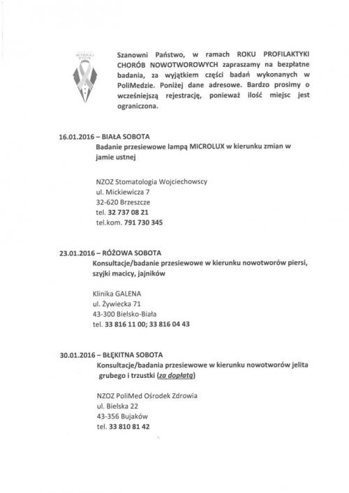 » Informacja na temat bezpłatnych badań w ramach ROKU PROFILAKTYKI CHORÓB NOWOTWOROWYCH