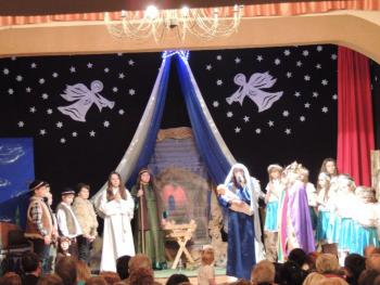 Młodzi aktorzy przypomnieli nam wydarzenia tej niezwykłej nocy, kiedy Bóg stał się Człowiekiem i przyszedł do wszystkich ludzi - ubogich pasterzy i bogatych króli … - przyszedł, aby zbawić każdego człowieka. Końcowa część była poświęcona wspomnieniu o zasługach i dokonaniach ks. Proboszcza Michała Boguty. Scenę napisała pani Bogumiła Mynarska-Zarudzka.