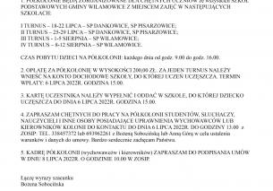 Komunikat dotyczący półkolonii letnich w szkołach na terenie Gminy Wilamowice