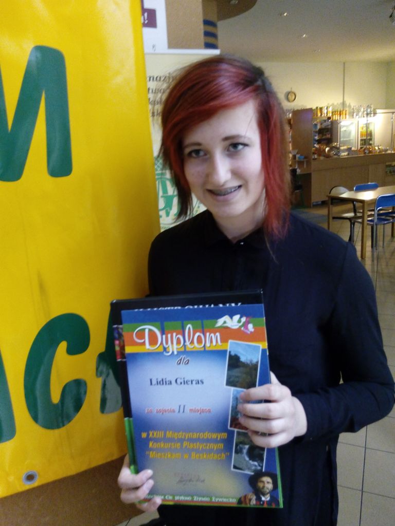 Miło nam poinformować, że uczennica 2 klasy Prywatnego Gimnazjum „Creative” w Bielsku - Białej, mieszkanka Zasola Bielańskiego - Lidia Gieras zdobyła II miejsce w XXIII Międzynarodowym Konkursie Plastycznym „Mieszkam w Beskidach” organizowanym przez Gminny Ośrodek Kultury w Świnnej. Praca, którą wykonała to pejzaż prezentujący zimowy krajobraz górski.