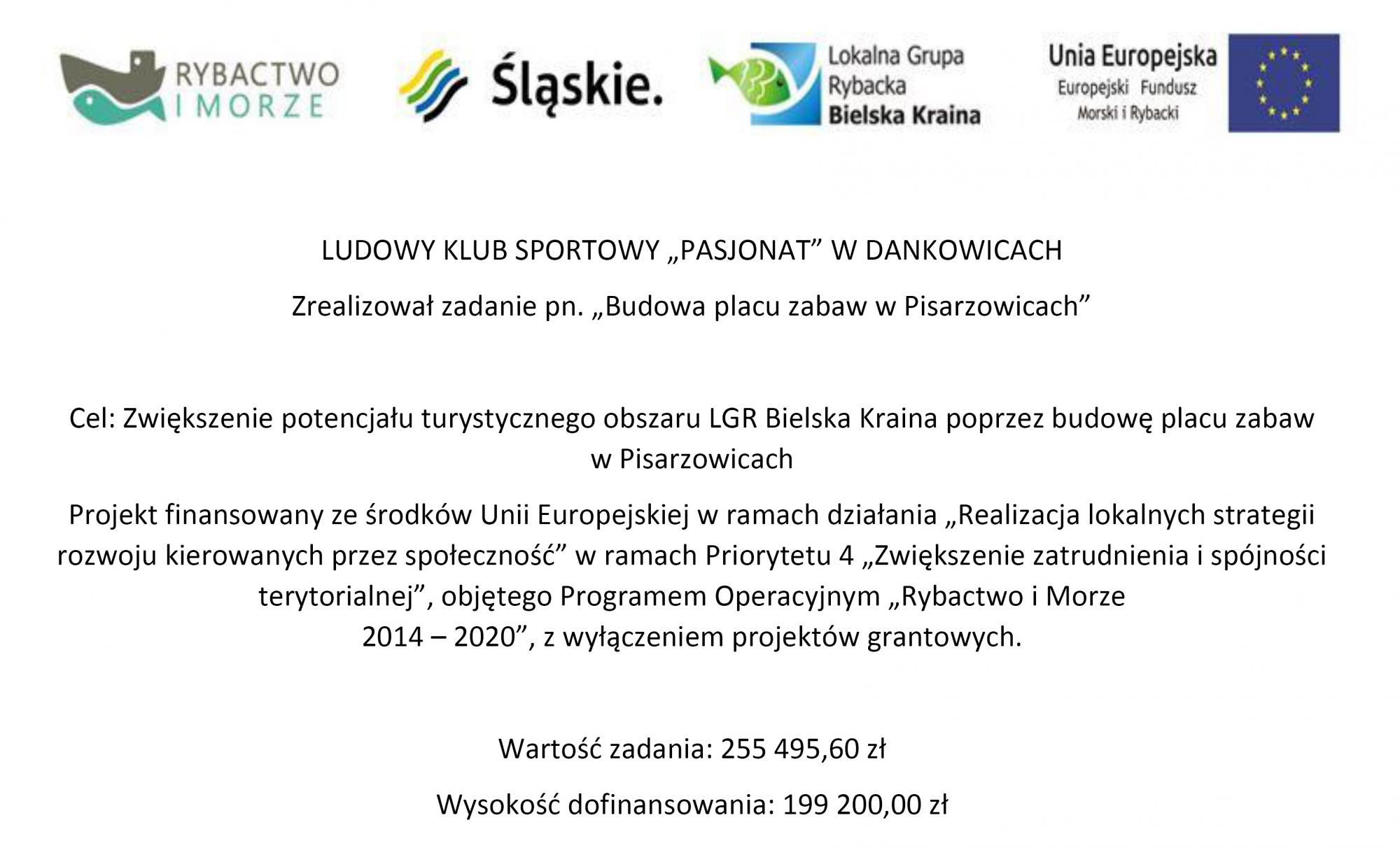 » LUDOWY KLUB SPORTOWY „PASJONAT” W DANKOWICACH zrealizował zadanie pn. „Budowa placu zabaw w Pisarzowicach”