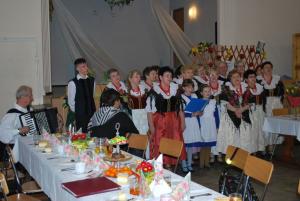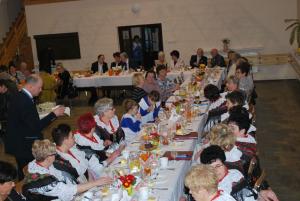 Zespół Regionalny „Pisarzowianki” uświetnił także radosną atmosferę śpiewem i tańcem. Należy dodać, że wraz z zespołem wspaniale śpiewała cała sala. Panie z KGW dopieszczały wszystkich obecnych pysznym i sutym jadłem.