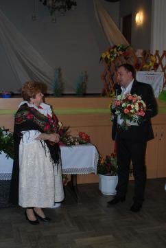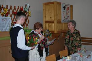 Następnie przewodnicząca w imieniu wszystkich zebranych złożyła okolicznościowe życzenia, a członek zespołu Daniel wręczał kwiaty jubilatkom, które obchodziły swoje urodziny, 80-lat pani Teresa Jędrzejko, 70-lat pani Janina Szubert, zaś członkini Koła pani Maria Carbol obchodziła wraz z mężem 50 - lecie pożycia małżeńskiego.
