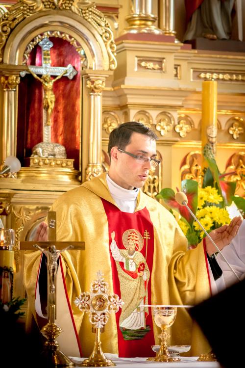 Sama Eucharystia była wyjątkowa i miała piękną, odświętną oprawę. Nie brakowało w niej wzruszających i bardzo osobistych momentów. Jeszcze przed jej rozpoczęciem ksiądz Grzegorz przyjął gratulacje i życzenia od grup parafialnych i organizacji. Kazanie poświęcone służbie kapłańskiej wygłosił ksiądz prałat Feliks Formas. Jego wybór miał symboliczne znaczenie, bowiem najstarszy kapłan wywodzący się z parafii św. Urbana wskazywał drogę kapłaństwa najmłodszemu. Zwrócił uwagę na wielkie zadania, jakie stają przed prezbiterem w jego posłudze.
