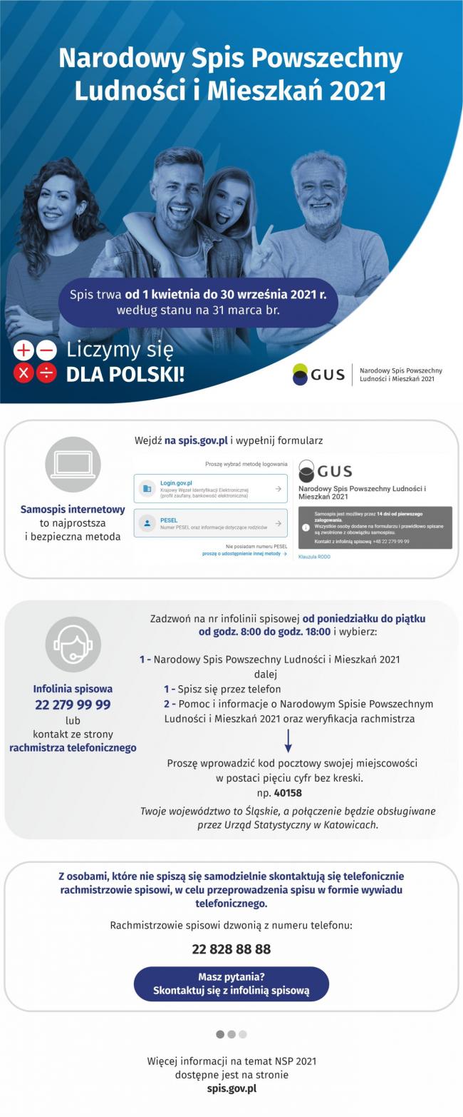 Od 1 kwietnia 2021 r. Główny Urząd Statystyczny realizuje Narodowy Spis Powszechny Ludności i Mieszkań.