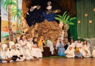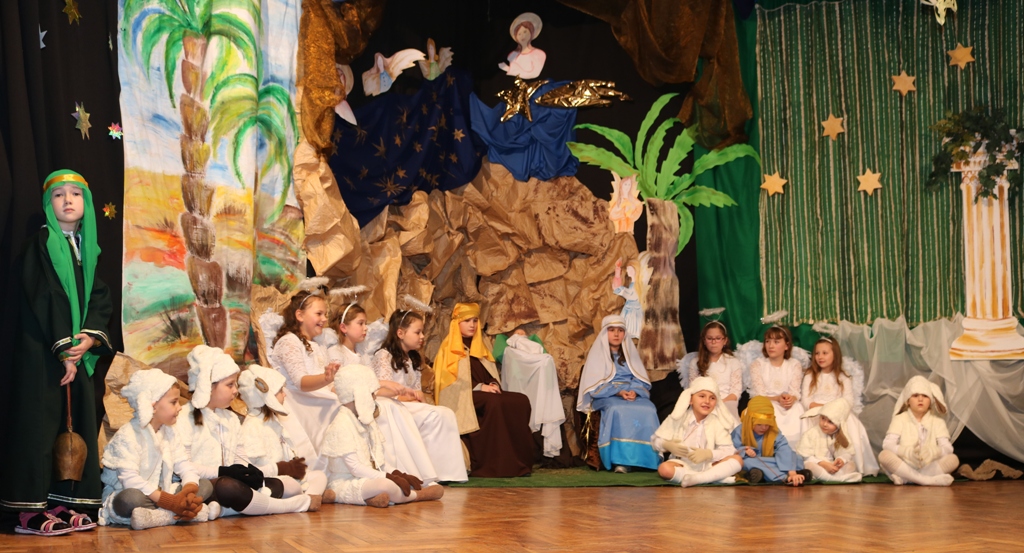 Przedstawienie było wyjątkowe, gdyż kolejny raz w naszych szkolnych jasełkach wystąpiły dzieci w strojach regionalnych prezentując rodzimy folklor. Piękna scenografia nadała temu wyjątkowemu spotkaniu świąteczny i uroczysty klimat. Uczniowie  śpiewem oraz grą na  ksylofonie zachwycili widzów i uświetnili wspólne świętowanie.