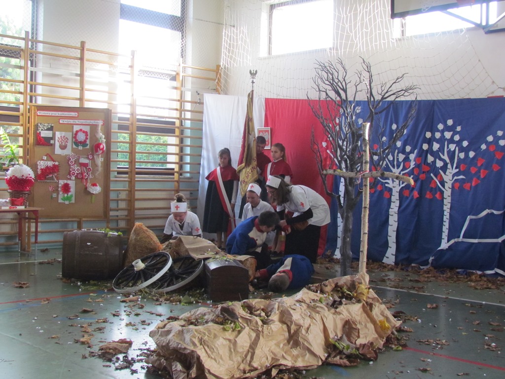 Już 8 listopada w Szkole Podstawowej im. H. Sienkiewicza w Hecznarowicach odbyła się rocznicowa akademia. Towarzyszyło jej podsumowanie konkursu plastycznego „Kwiaty dla Niepodległej”. Wyreżyserowane przez Annę Markiel widowisko kostiumowe w syntetycznych obrazach przypomniało dzieje Polski i starania pokoleń Polaków o odzyskanie niepodległości. Trudno o lepszą lekcję historii. W drugiej części akademii zaproszeni goście w osobach księdza proboszcza Aleksandra Smarducha, kierownika ZOSiP Bożeny Sobocińskiej i sołtysa Hecznarowic Beaty Nycz wręczyli dyplomy i nagrody w konkursie plastycznym zorganizowanym dla pierwszoklasistów. „Kwiaty dla Niepodległej” zachwyciły wszystkich, a dzieci nie kryły przejęcia uroczystą chwilą. Najgłośniej śpiewały też hymn narodowy. Na koniec delegacja uczniów starszych klas złożyła kwiaty i znicze pod kamieniem upamiętniających walki o niepodległość ojczyzny.