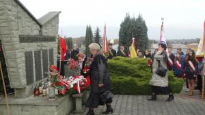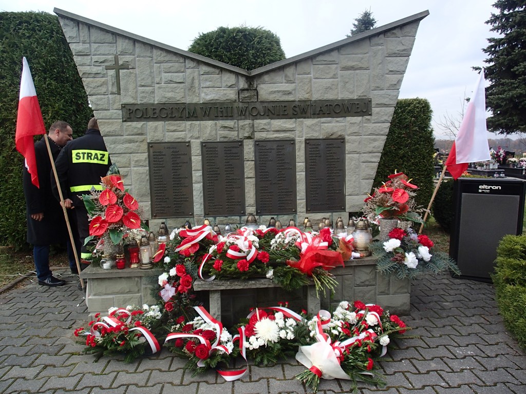 Po eucharystii poczty sztandarowe, delegacje władz samorządowych i wszystkich organizacji społecznych w towarzystwie orkiestry pod batutą pana Piotra Olearczyka udały się na miejscowy cmentarz pod pomnik mieszkańców Pisarzowic poległych podczas I i II wojny światowej. Pomnik ten powstał z inicjatywy Rady Sołeckiej w 1989 roku. Tam odbyła się główna część uroczystości. Po apelu poległych prowadzący uroczystość wicedyrektor Szkoły Podstawowej Barbara Więzik oraz dyrektor Gimnazjum Maciej Żarski zaprosili delegacje do składania pod pomnikiem kwiatów i zniczy. Po tej ceremonii ksiądz Piotr odczytał modlitwę, orkiestra zagrała drugą zwrotkę hymnu państwowego i nastąpiło zamknięcie jakże ważnej dla nas wszystkich uroczystości.