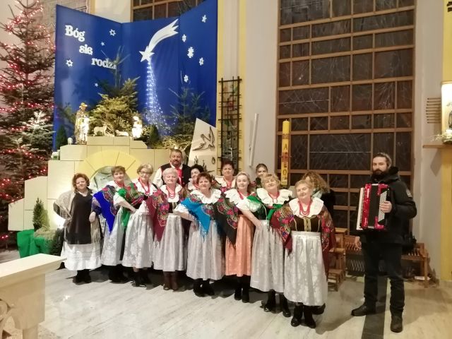 Członkowie Zespołu Regionalnego „Pisarzowianki” nie wystąpili z koncertem w kościele jak było wcześniej planowane (niestety obostrzenia covidowe nadal są), ale uświetnili śpiewem kolęd i pastorałek ostatnią mszę świętą, którą odprawił ks. Mateusz. Podczas mszy świętej członkowie zaśpiewali (była to premiera) przepiękną kolędę napisaną przez kaznodzieję Grzegorza Jana Zdziewojskiego z Łasku. Ksiądz ten był nie tylko wspaniałym kaznodzieją kontrreformacyjnego kościoła ,związany z warstwami ludowymi, ale i poetą. Pracował w naszej parafii w latach 30 XVII wieku. Muzykę do kolędy „Żłóbek Narodzenia Pana” napisał „współczesny już” akompaniator zespołu Kuba.