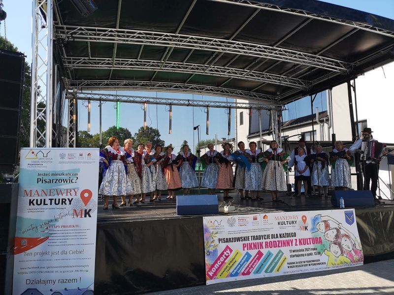 Piknik rodzinny z kulturą - pisarzowskie tradycje dla każdego w ramach projektu "Manewry Kultury" odbył się 11 września 2021 r. Był to pierwszy tego typu Piknik i z pewnością nie ostatni. Projekt był realizowany w ramach programu Narodowego Centrum Kultury "Dom Kultury + Inicjatywy Lokalne 2021", dofinansowany ze środków Ministra Kultury, Dziedzictwa Narodowego i Sportu. Beneficjentem programu był Miejsko-Gminny Ośrodek Kultury Wilamowice, a realizatorem zadania Gminne Centrum Działań Twórczych w Pisarzowicach. W organizację miejsca - terenu dla wszystkich chętnych zabawy z kulturą byli m.in. druhowie OSP, panowie wspierający członkinie KGW Strażniczki Tradycji w pracy fizycznej, sołtys wraz z Radą Sołecką, młodzież Szkoły Podstawowej i panie z GCDT w Pisarzowicach wraz z członkiniami KGW Strażniczki Tradycji”.