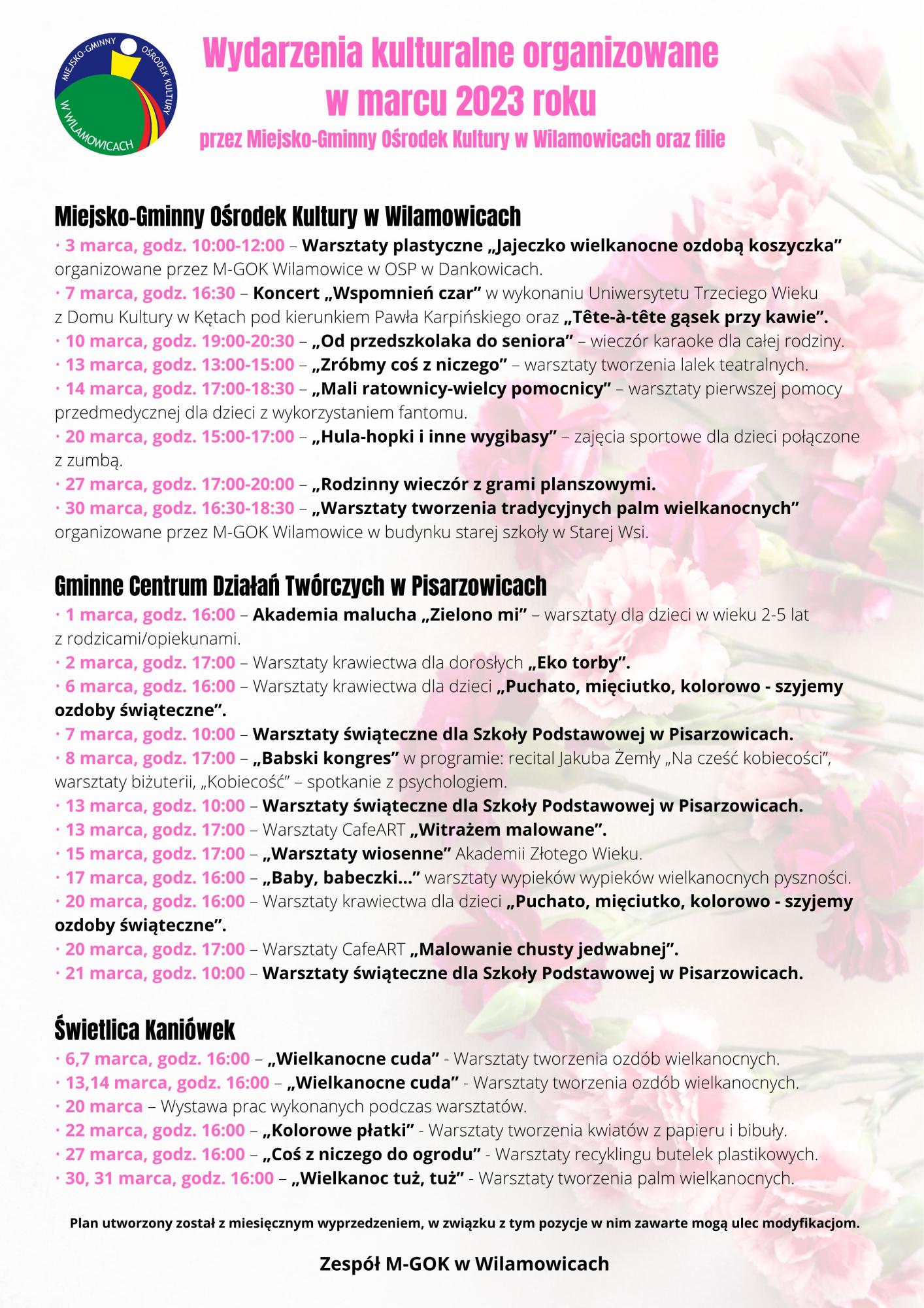 » Plan wydarzeń kulturalnych na miesiąc marzec 2023