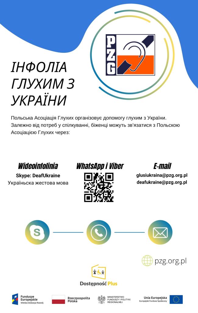 Informacje nt. videoinfolinii dostępne są na stronie internetowej Polskiego Związku Głuchych (https://www.pzg.org.pl/pomoc-ukrainie/).