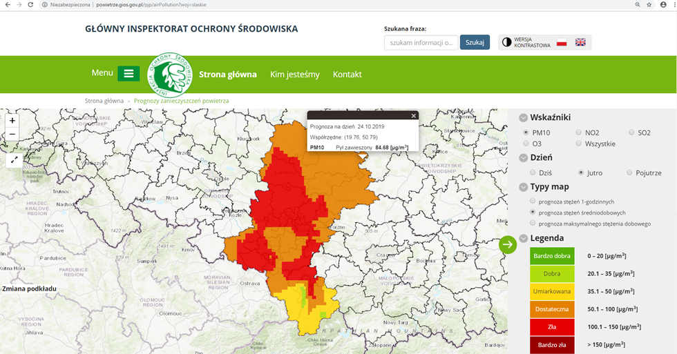 POWIADOMIENIE o ryzyku wystąpienia przekroczenia poziomu informowania (101 – 150 µg/m3) dla pyłu zawieszonego PM10 w powietrzu