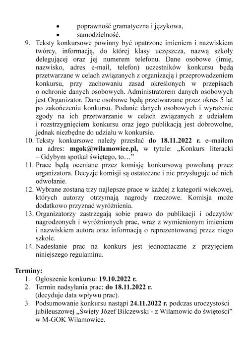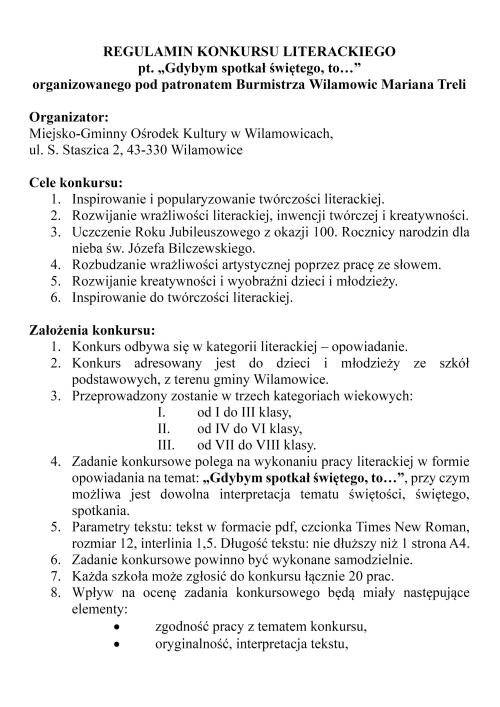 » Regulamin Gminnego Konkursu Literackiego "Gdybym spotkał świętego, to..."