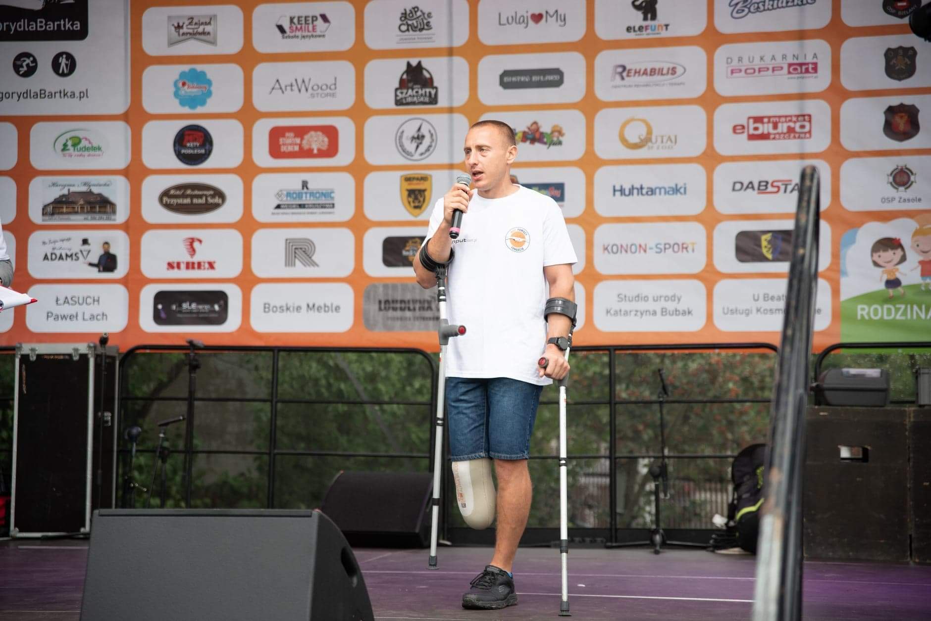 15 czerwca 2020 roku późnym wieczorem w kopalni Brzeszcze miał miejsce wypadek. Jak się z czasem okazało – ciężki. Na zaledwie trzydziestoletniego Bartka spadł wielki głaz ważący blisko jedną tonę, Bartek dosłownie otarł się o śmierć. Na szczęście sportowy instynkt i refleks pozwoliły mu zachować zimną krew, odskoczyć w ostatniej chwili w bok i uniknąć najgorszego z możliwych scenariuszy. Ucierpiała jednak prawa noga Bartka. Stopa została całkowicie zmiażdżona i oderwana od reszty ciała, powyżej kostki nastąpiły poważne złamania. W obliczu śmierci wydawać by się mogło, że nie jest to największa tragedia. Jednakże na miejscu wypadku wszyscy struchleli wiedząc, że akurat dla Bartka będzie to wielki cios. Jak dla każdego zapalonego sportowca… Ponad tydzień kolejne zespoły specjalistów walczyły, by poskładać w jedną całość i przywrócić funkcje uszkodzonej stopie. Zdawali sobie sprawę z tego, że dla Bartka powrót do pełnej sprawności będzie kluczowy. Nadzieja na szczęśliwe zakończenie rosła do samego końca. Aż w dniu, na który zaplanowano przeszczep tkanek z uda do otwartych ran stopy, padła ostateczna diagnoza. Z powodu rozległych obrażeń i zanieczyszczeń obumierać zaczęły poszczególne palce uszkodzonej stopy i tzw. podeszwa, która w głównej mierze odpowiada za prawidłowe ruchy. Grono najlepszych w kraju specjalistów jak mantrę powtarzało, że „lepsza dobra proteza niż kulawa noga”. Drugim czynnikiem decydującym był ból, ból nie do zniesienia, ból nie reagujący nawet na anestezjologiczne metody jego łagodzenia. I tak właśnie 21 czerwca, gdy wszyscy świętowaliśmy Dzień Ojca, Bartek, podjąć musiał najtrudniejszą decyzję w swoim dotychczasowym życiu. W całkowitym odosobnieniu wynikającym z pandemii koronawirusa, bez obecności swojej żony Klaudii i bliskich, podpisał zgodę na amputację prawego podudzia powyżej doznanych złamań łydki. Pełen nadziei, że jest to jego jedyna szansa na spokojne życie bez bólu, z możliwością sportowego rozwoju.
