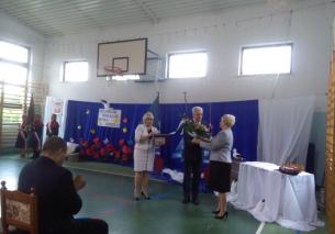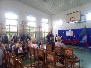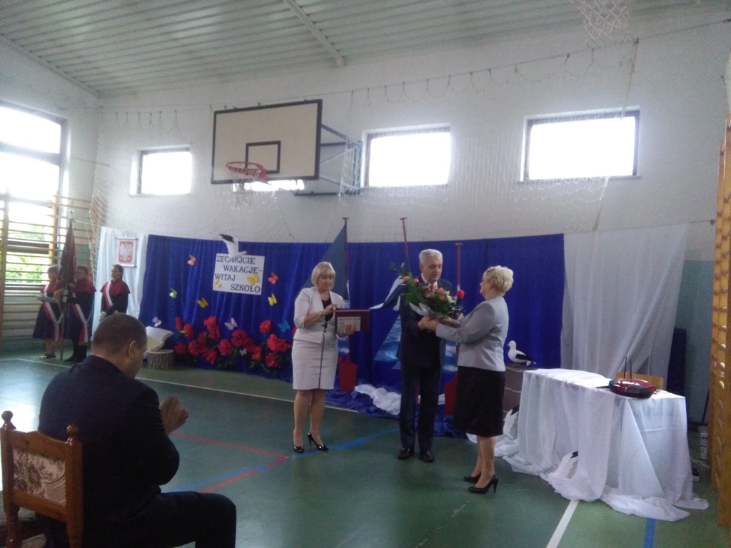 Pan Burmistrz wyraził nadzieję że realizacja w/w projektów przyczyni się do podnoszenia jakości edukacji w naszej gminie. Następnie gospodarz Gminy Wilamowice podziękował za rok pracy piastującej funkcje dyrektora Pani Alinie Bryzek, wręczając jej pamiątkowe podziękowanie i kwiaty . W tym trudnym czasie, po śmierci Pani dyrektor Beaty Gąszcz, Pani Alina Bryzek doskonale wywiązała się ze swych obowiązków. Na zakończenie swojego wystąpienia Pan Marian Trela przedstawił nowego dyrektora Pana Macieja Żarskiego wręczając mu powierzenie obowiązków na stanowisko dyrektora. Nowy dyrektor przywitał zebranych dziękując za zaufanie jakim go obdarzono. By uczcić pamięć poprzedniej Pani Dyrektor Pan Żarski poprosił zebranych o powstanie i minutę ciszy. Na zakończenie swojego wystąpienia nowy dyrektor życzył wszystkim uczniom nauczycielom i pracownikom by ten nowy rok szkolny był dla nas wszystkich rokiem pozytywnych zmian dla dobra środowiska oświatowego Hecznarowic.