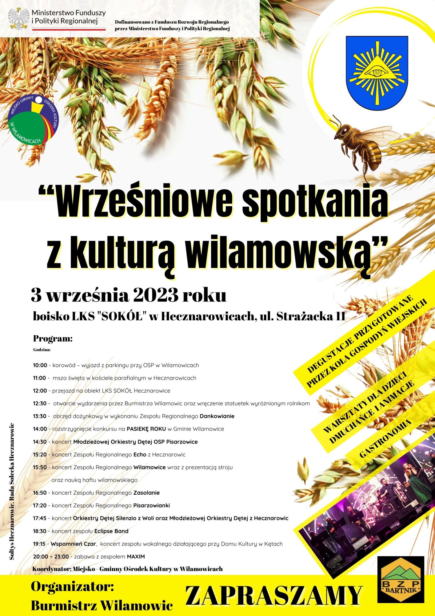 » Serdecznie zapraszamy na WRZEŚNIOWE SPOTKANIA Z KULTURĄ WILAMOWSKĄ - 3 września 2023r. boisko LKS "Sokół" w Hecznarowicach