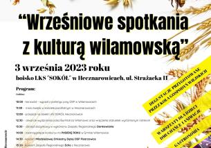 Serdecznie zapraszamy na WRZEŚNIOWE SPOTKANIA Z KULTURĄ WILAMOWSKĄ - 3 września 2023r. boisko LKS "Sokół" w Hecznarowicach