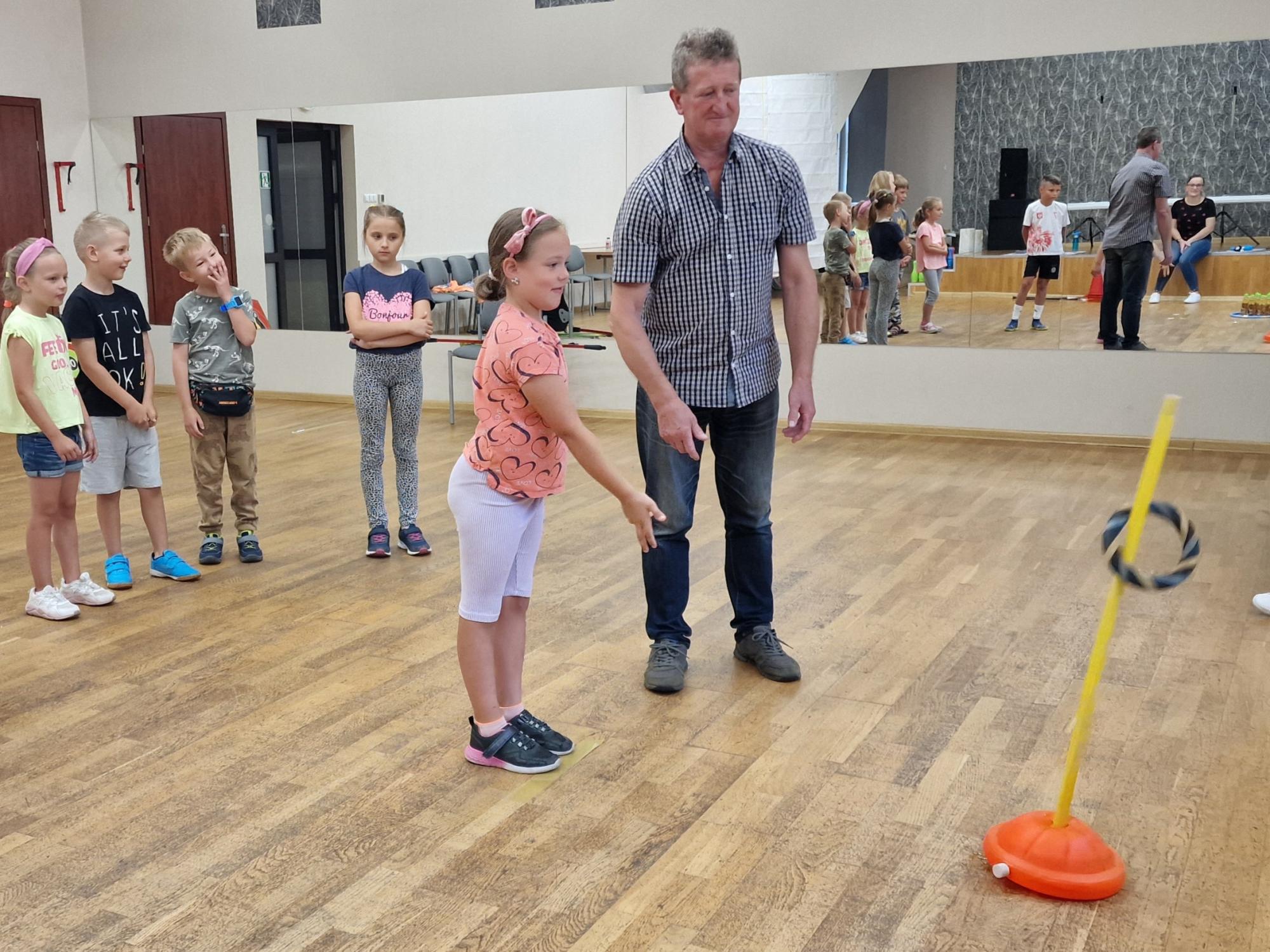 Zmiana pogody nie przeszkodziła nam w zorganizowaniu „Wtorku na sportowo”. Zajęcia przenieśliśmy na salę M-GOK Wilamowice, gdzie przy współpracy z TKKF „Żywioł” Wilamowice zorganizowaliśmy dla dzieci konkurencje sportowe z nagrodami.
