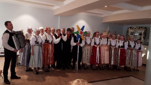 Pani Maria Berezowska powitała wszystkich zebranych Emerytów oraz gości, następnie złożyła z głębi serca płynące życzenia noworoczne i zaprosiła na koncert. Oprawę artystyczną spotkania zapewnił Zespół Pieśni i Tańca Tradycja ze Starej Wsi działający pod kierunkiem Pani Renaty Nycz. Artyści zaśpiewali kolędy i pastorałki, a po swoim znakomitym koncercie zaprosili do wspólnego kolędowania wszystkich uczestników.