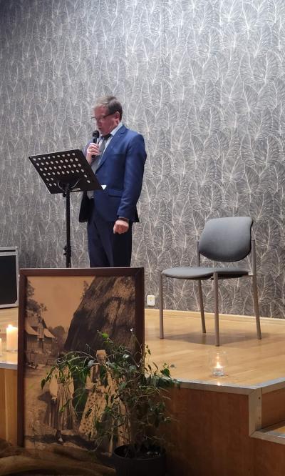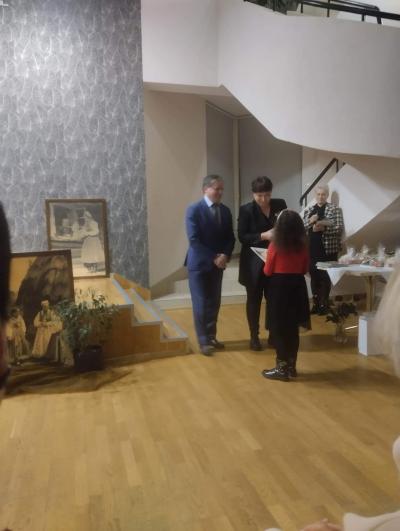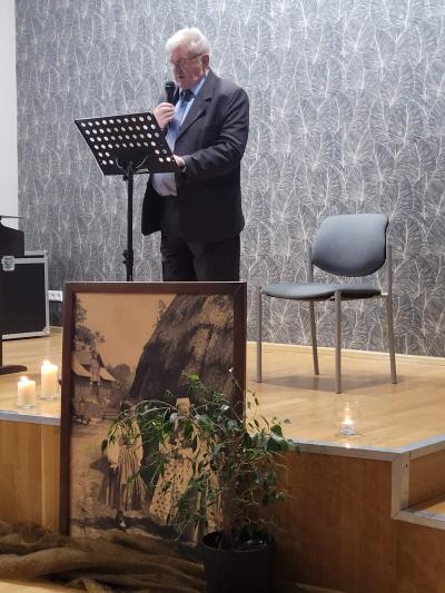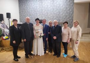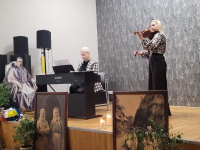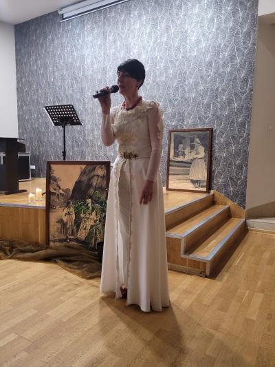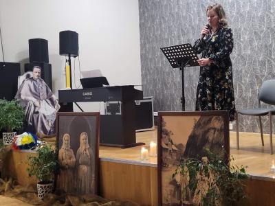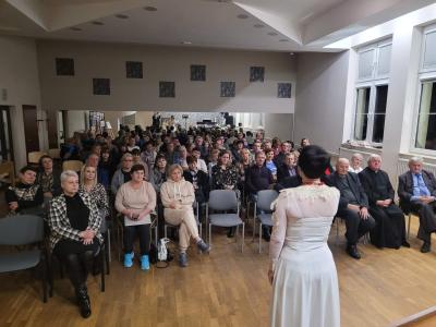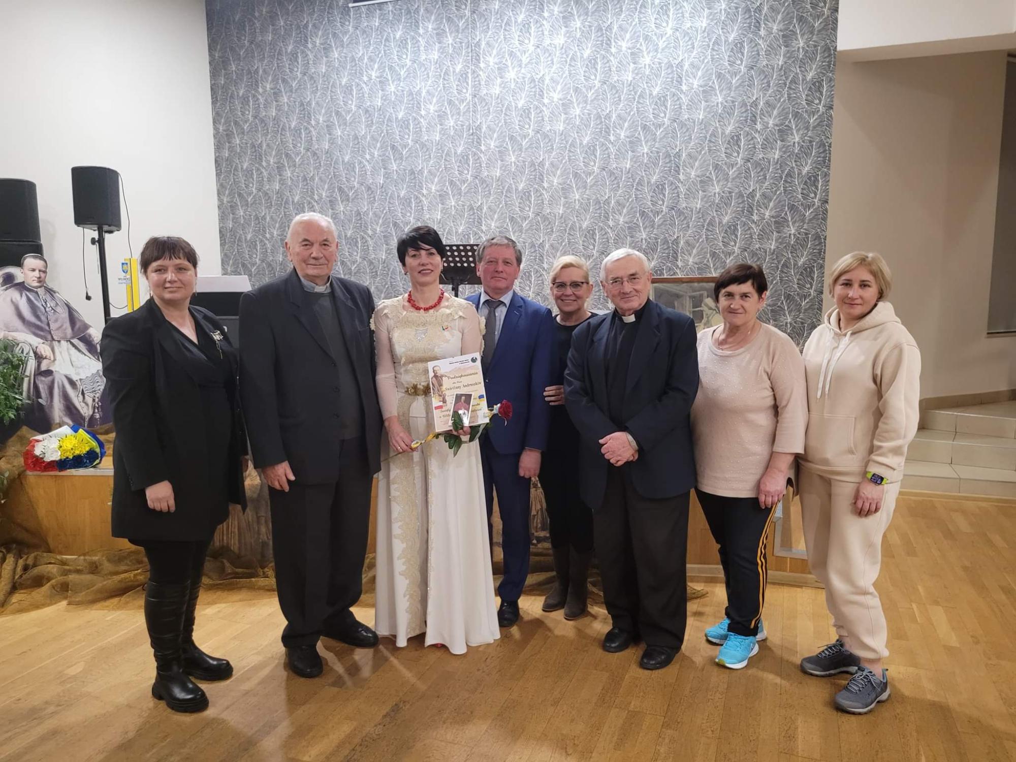 Na zakończenie wieczoru wystąpiła Pani Swietłana Adruszkiw, dyrektor Domu Kultury w Kozowej, która przyjechała do nas z objętej wojną Ukrainy, aby również uczcić Arcybiskupa Józefa Bilczewskiego. Jej śpiew wzruszył zebranych, którzy nie ukrywali łez, gdy słuchali pieśni o zrujnowanej wojną Ukrainie. Pani Swietłana podziękowała za pomoc, jaką od nas otrzymali, a wieczór ten zakończyliśmy wspólnym śpiewem piosenki „Hej Sokoły” i mimo tego iż wybrzmiała ona w języku ukraińskim i polskim, była hołdem oddanym zarówno dla Ukrainy jak i Polski.