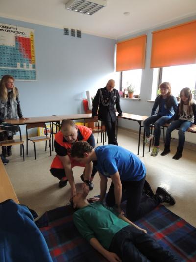 Delegaci Sejmiku, którzy gościli w naszej szkole wraz z zaproszonymi gośćmi wysłuchali wykładu ratownika medycznego pana Mateusza Nowaka na temat zasad udzielania pierwszej pomocy. Wiedzę teoretyczną mogli sprawdzić w czasie zajęć praktycznych przeprowadzonych przez ratownika medycznego oraz naczelnika Ochotniczej Straży Pożarnej w Wilamowicach pana Marka Maciejczyka. W ćwiczeniach wykorzystane zostały fantomy, co uatrakcyjniło zajęcia i pozwoliło zdobyć nowe umiejętności.