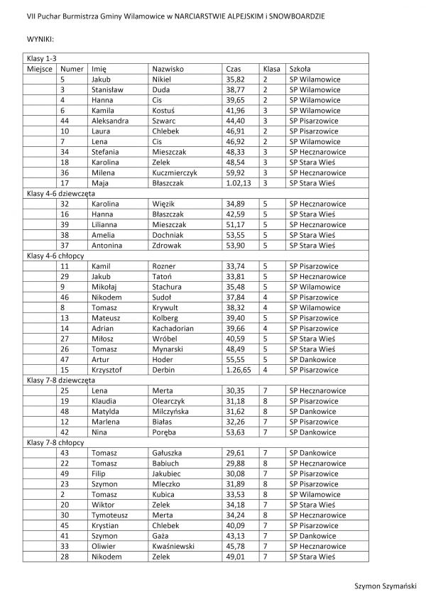 VII PUCHAR BURMISTRZA WILAMOWIC W NARCIARSTWIE ALPEJSKIM I SNOWBOARDZIE
