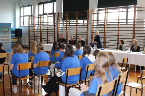 Na wstępie powitano zaproszonych Gości, wśród których honorowe miejsca zajęli: Kierownik ZOSiP - Pani Bożena Sobocińska, Prezes Zarządu OSP w Pisarzowicach – Pan Tadeusz Łaś, Członek Zarządu Ochotniczej Straży Pożarnej w Pisarzowicach – Pan Jan Zawadzki, Członek OSP – Pan Marcin Pudełko, Dyrektor Szkoły Podstawowej im. Jana Pawła II w Pisarzowicach – Pani Lidia Dziubek oraz delegaci ze szkół wraz z opiekunami. Otwarcia obrad dokonała Pani Prezes Joanna Kozieł, a następnie przedstawiono część teoretyczną, której kanwę stanowiła prezentacja multimedialna na temat historii Ochotniczej Straży Pożarnej w Polsce oraz w naszej Gminie. Zaprezentowano rys historyczny każdej z gminnych jednostek OSP, a zaproszeni strażacy przedstawili zebranym szereg ciekawostek na temat funkcjonowania i działalności druhów Ochotniczej Straży Pożarnej w Pisarzowicach. Podczas Sesji przedstawiono również cenne informacje na temat tego, czym różni się Ochotnicza Straż Pożarna od jednostek Państwowej Straży Pożarnej. Wygłoszone prelekcje uzmysłowiły delegatom, że praca strażaka to nie tylko zawód, ale przede wszystkim powołanie, a bycie druhem wymaga odwagi, niezłomności i poświęcenia na rzecz drugiego człowieka. By lepiej zrozumieć specyfikę zawodu strażaka, delegaci mogli odnieść zdobytą wiedzę teoretyczną do działań praktycznych. Przed pisarzowicką Szkołą na zebranych czekały dwa wozy strażackie, do których uczniowie mogli wsiąść, a także zapoznać się z wyposażeniem wozu oraz ze specjalistycznym sprzętem, którego w swojej pracy używają strażacy.