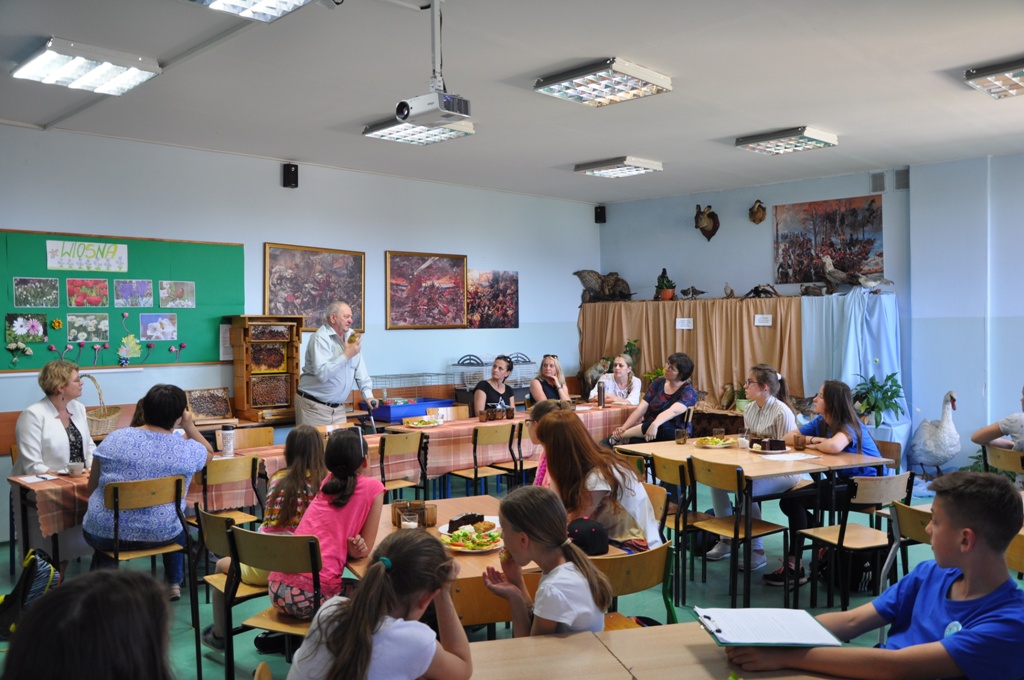 Zaproszony gość, Pan Stanisław Kamiński-leśniczy, pszczelarz, przyrodnik z zamiłowania, zabrał nas w podróż po świecie dzikich zwierząt, opowiedział o życiu pszczół i leczniczych właściwościach miodu oraz zaprezentował pszczeli dom. Podkreślił także, na jakie zagrożenia wynikające z ludzkiej bezmyślności, narażone są dzikie zwierzęta.