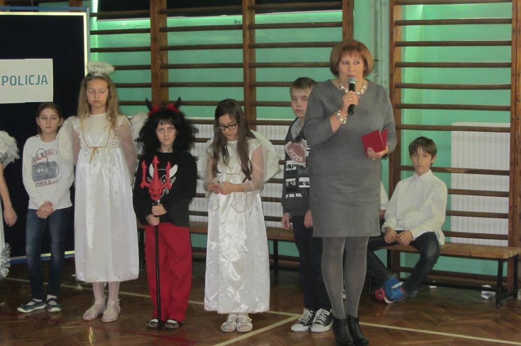 Takie oto życzenia złożyły dzieci z klasy IVA w finale przygotowanego przez siebie przedstawienia. Tym razem do szopki zaproszono postacie współczesne: wójta, lekarza, murarza, policjanta, uczniów, nauczyciela, dzieci z przedszkola, a także… Lucyfera i pomniejszych diabłów. Oprawę muzyczną zapewnił chór szkolny oraz trio Sonia i Karina Norymberczyk, i Mateusz Kostka (w nastrojowych utworach Złota Jerozolima i Przekażcie sobie znak pokoju), jak również Mariola Czulak (piosenka Gwiazda dnia). Podczas dwukrotnego występu (dla klas I - III i IV - VI) nie zabrakło wspólnego kolędowania oraz życzeń od Pani Dyrektor Lidii Dziubek i Samorządu Uczniowskiego. Tradycyjnie odbyły się także wigilie w klasach.