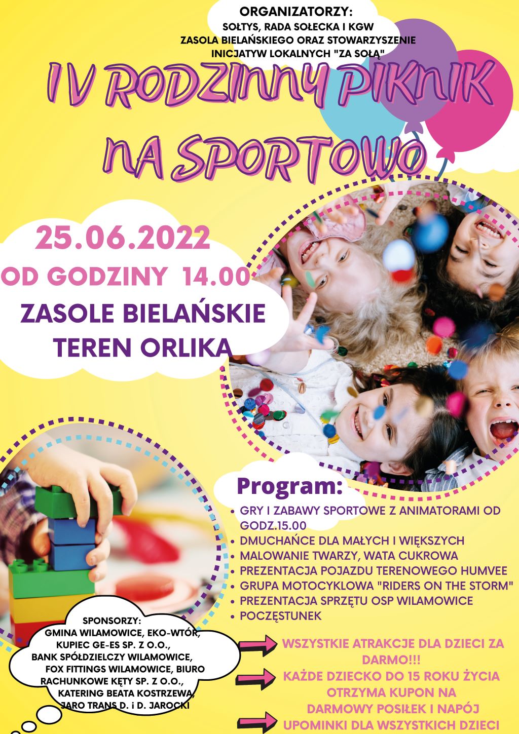 W Zasolu Bielańskim już w najbliższą sobotę IV RODZINNY PIKNIK NA SPORTOWO!