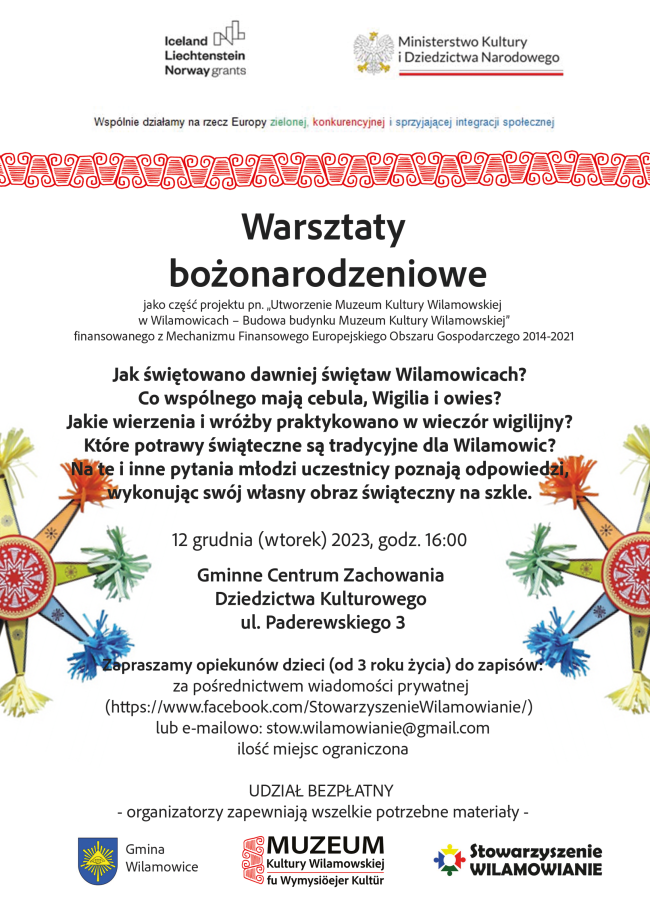 12 grudnia (wtorek) 2023, godz. 16:00 Gminne Centrum Zachowania Dziedzictwa Kulturowego ul. Paderewskiego 3