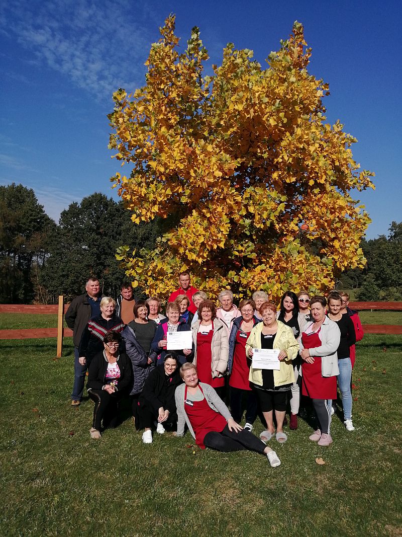 Oczywiście podczas tych intensywnie wykorzystywanych dni  warsztatowych, były chwile relaksu, spacerów po przepięknym, skąpanym w promieniach jesiennego słońca terenie m.in.: ścieżkami leśnymi, wokół pól słoneczników czy wybiegu dla wierzchowców biegających wolno po pastwisku.Na pożegnanie wszyscy uczestnicy warsztatów otrzymali certyfikaty, receptury wytwarzanych wyrobów oraz zrobione przez siebie kiełbasy.