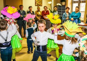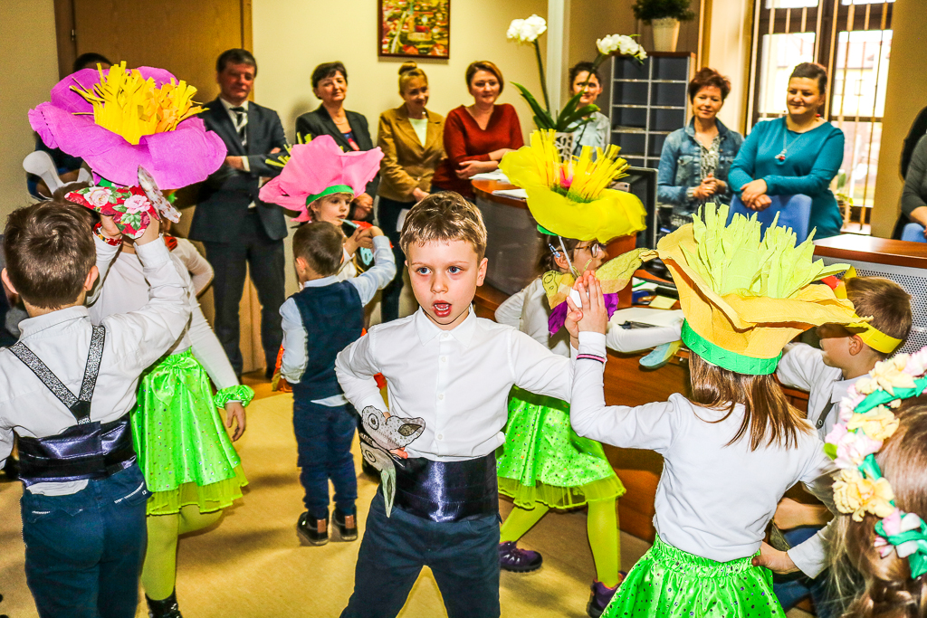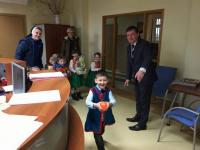 We wtorkowe przedpołudnie dzieci z przedszkola Zespołu Szkół w Wilamowicach oraz Ochronki odwiedziły Urząd Gminy, aby złożyć świąteczne życzenia.
