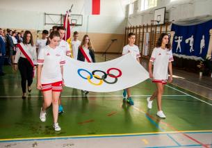 Nastepnym punktem programu Inauguracji była Prezentacja Olimpijska prowadzona przez Pana Bogdana Dubiela. Zapoznał on przybyłych z tematyką olimpijską, a także przeprowadził bardzo ciekawą rozmowę z gościem - Panem Przemysławem Niemcem, który jest Honorowym Obywatelem Gminy Wilamowice.